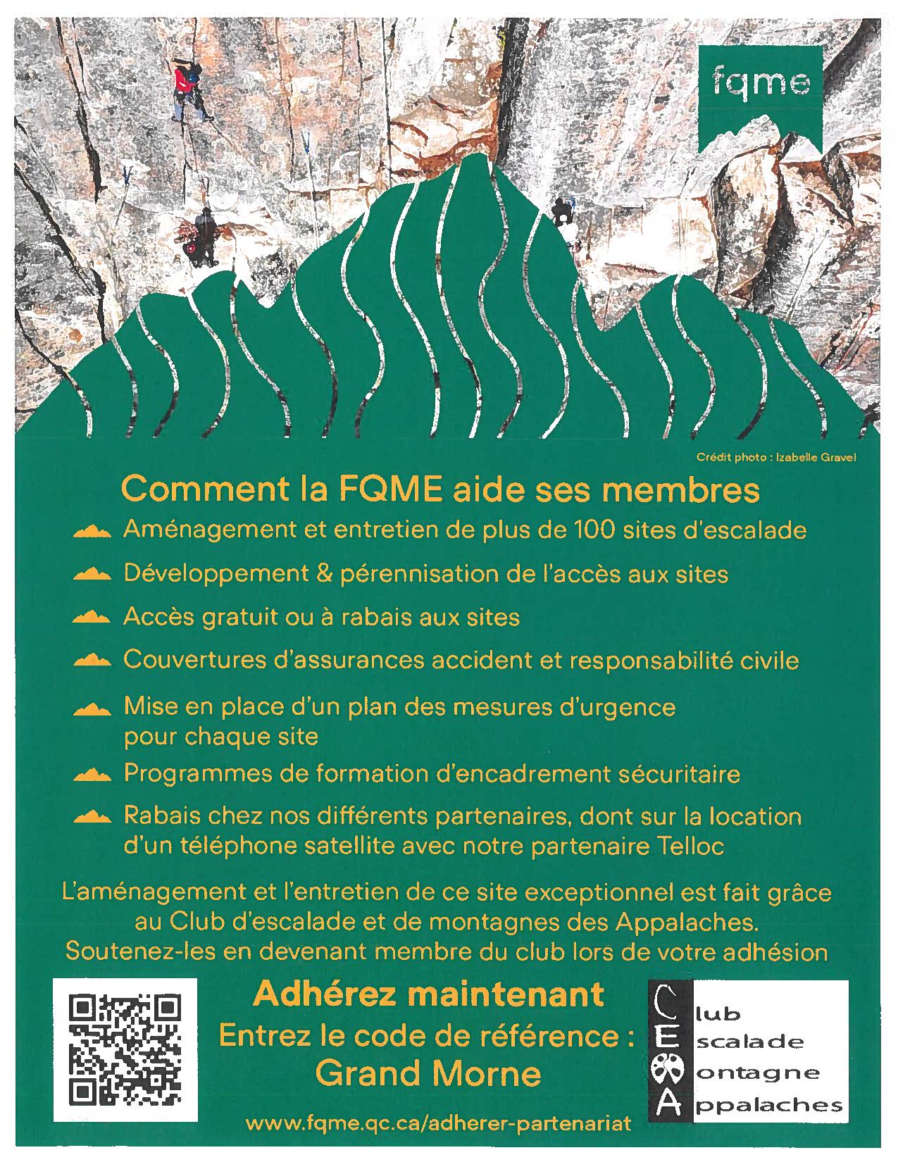Pour répondre à vos questions rendez-vous, sur la page Facebook du Club de l'escalade et de montagne des Appalaches https://www.facebook.com/CEMA.club.montagne Adresse2653, Chemin de la Grande-Ligne (11e rang) ContactBureau municipal