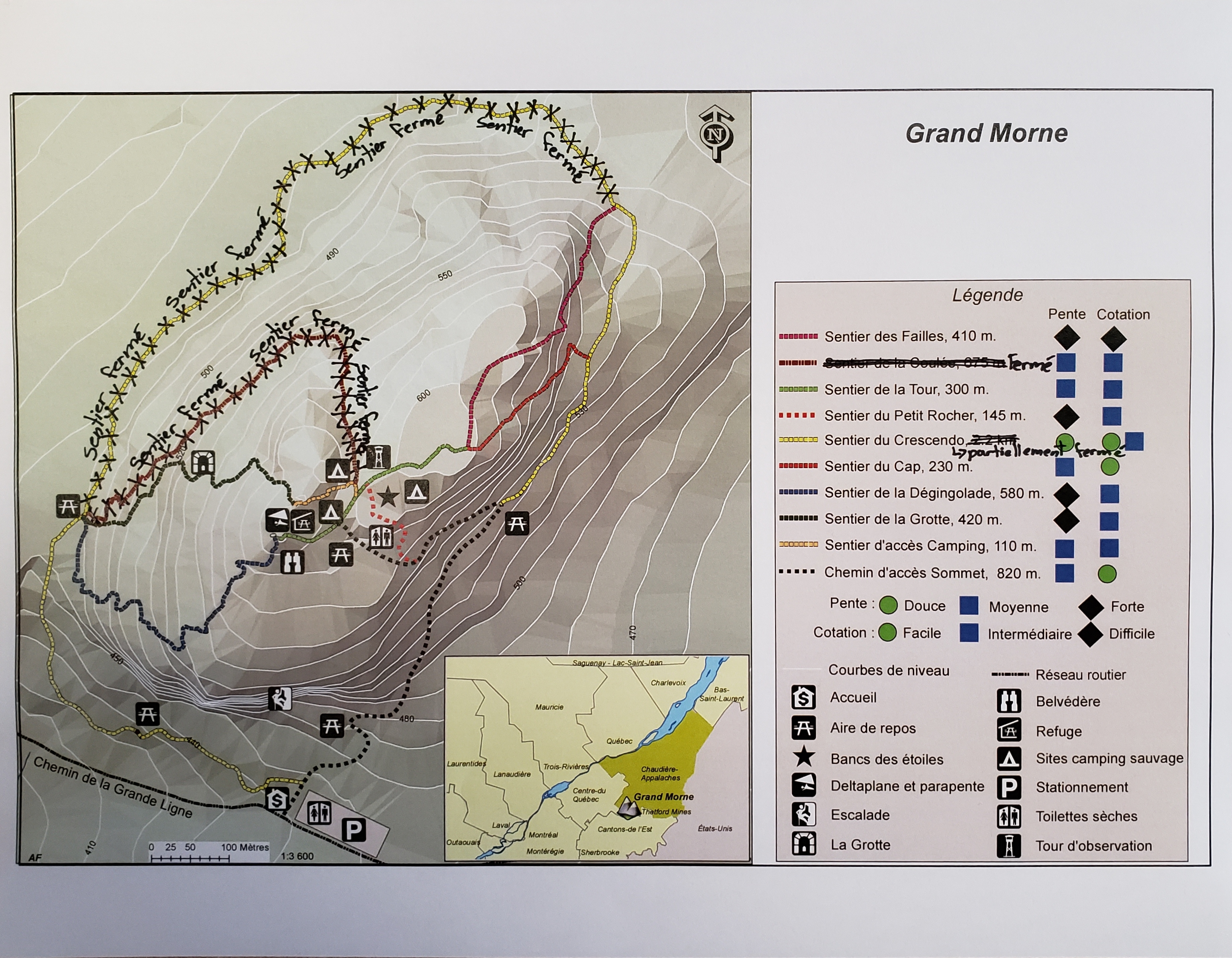 Album photos Neuf sentiers, cotés de « marche facile » à « marche difficile », font le tour de la montagne et vous conduisent au sommet où l’on peut admirer le paysage des Hautes Appalaches sur plus de 60 kilomètres. Des aires de repos, d’observation et de camping sauvage y sont aménagées. Cliquez sur la carte ci-dessous pour la télécharger