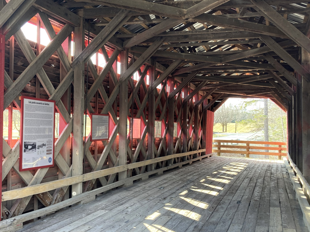 Pont couvert Situé sur le 7e rang, le pont couvert a été déménagé en 2014 pour devenir un attrait touristique où il est possible de pique-niquer en observant la nature. Venez-y découvrir son histoire à travers ses affiches historiques.